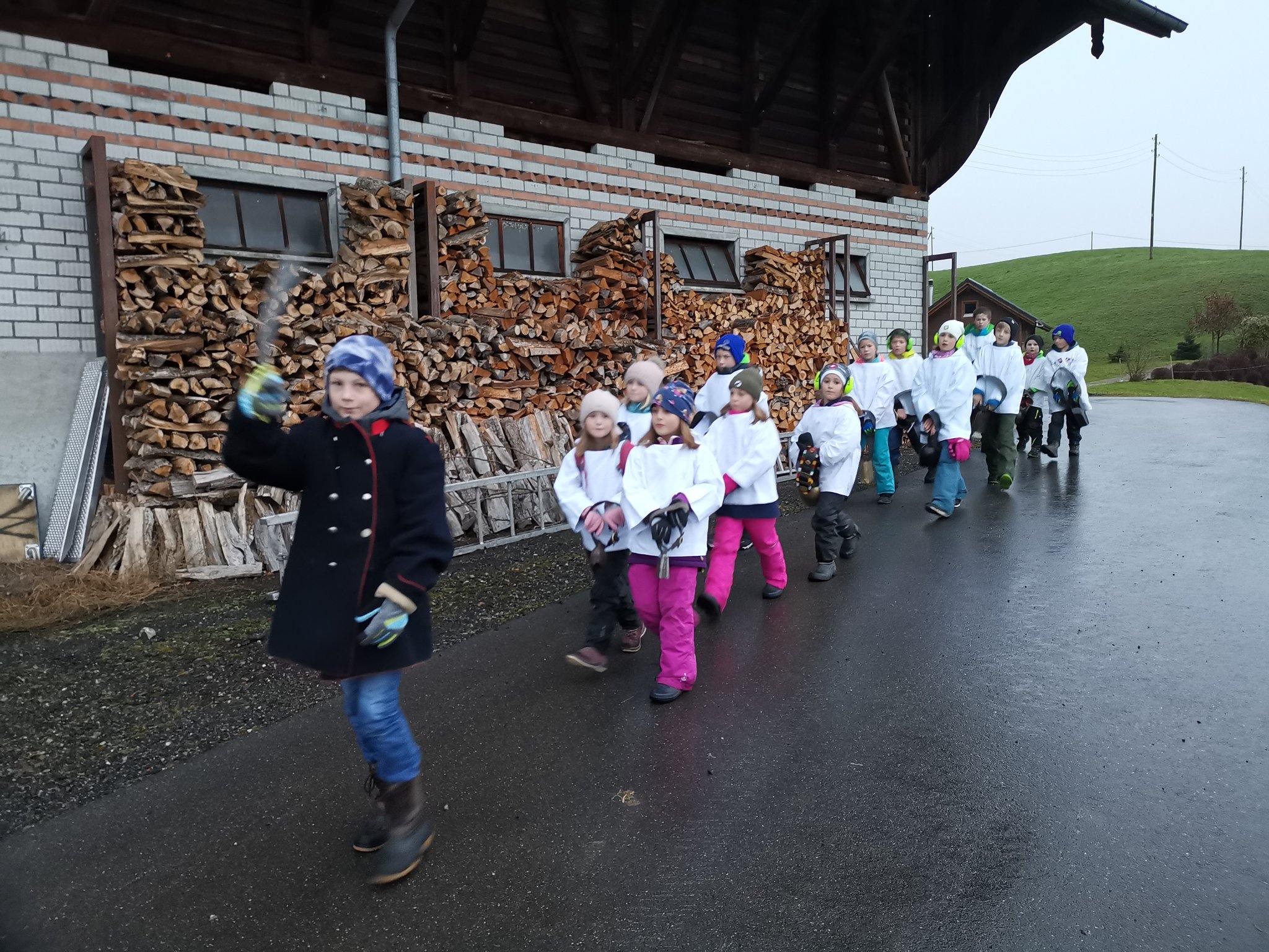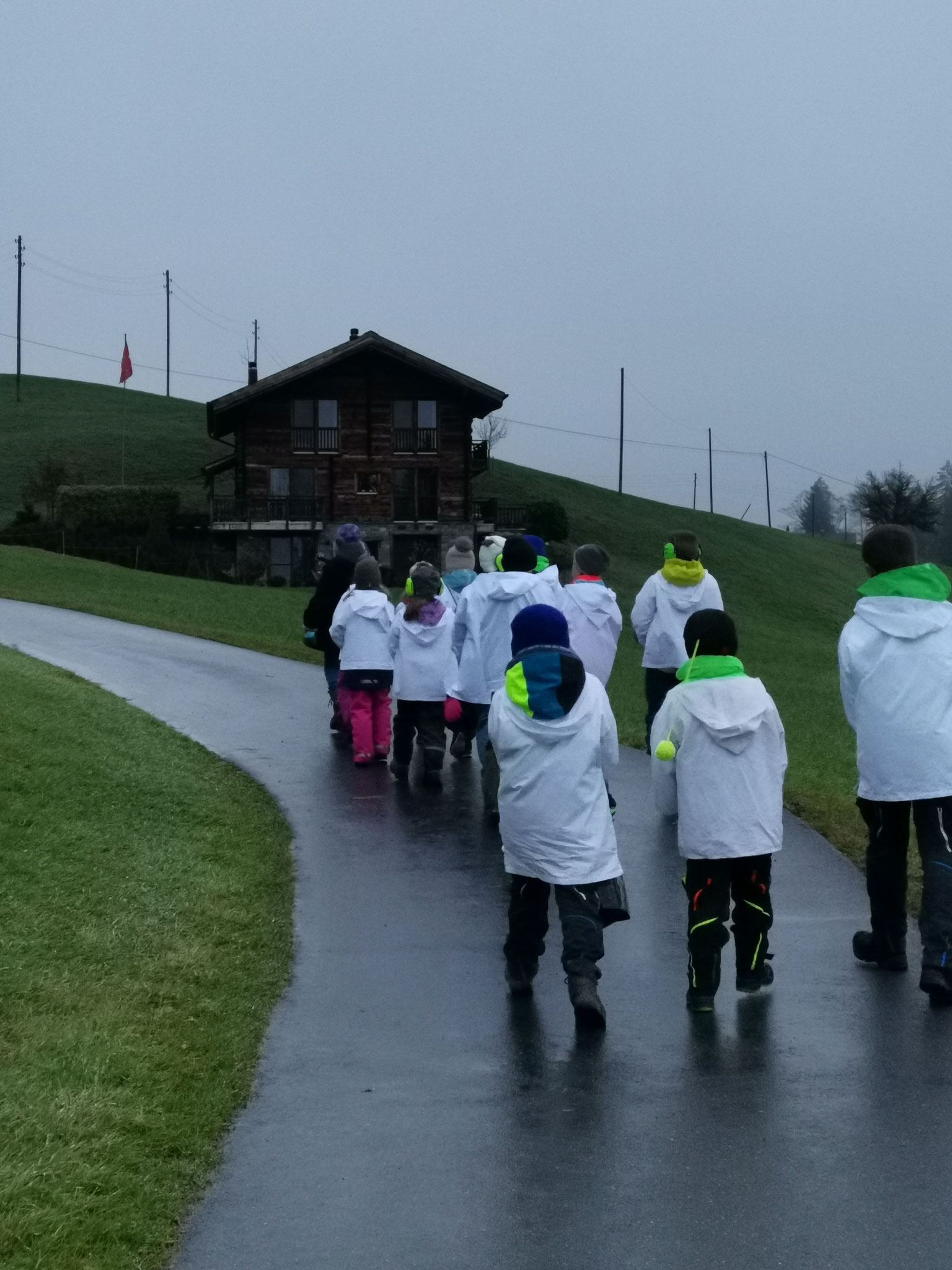 für die Projektwoche gelernte Lied in den Morgen hinein. Das Thema der Woche lautete «Wald & Natur».