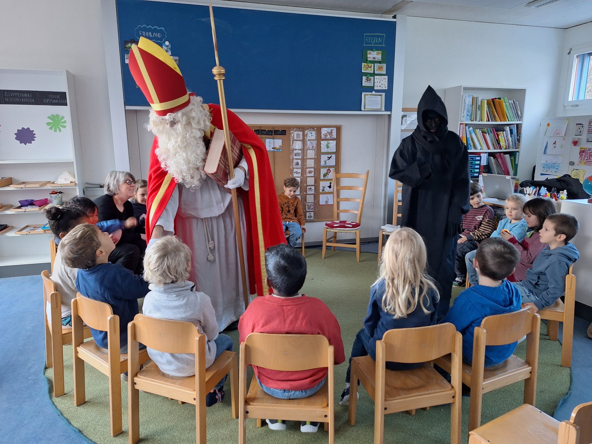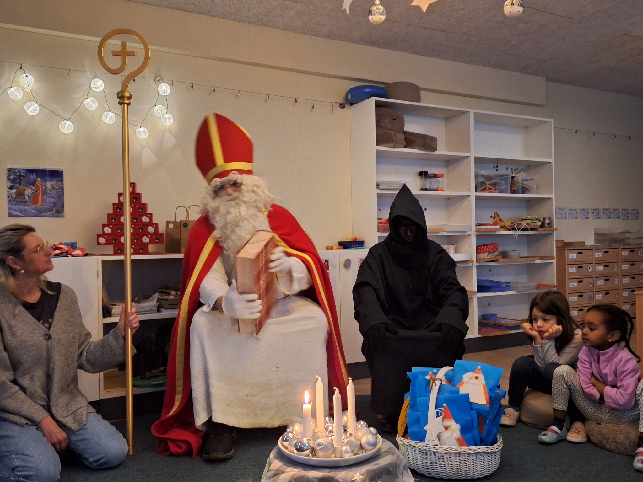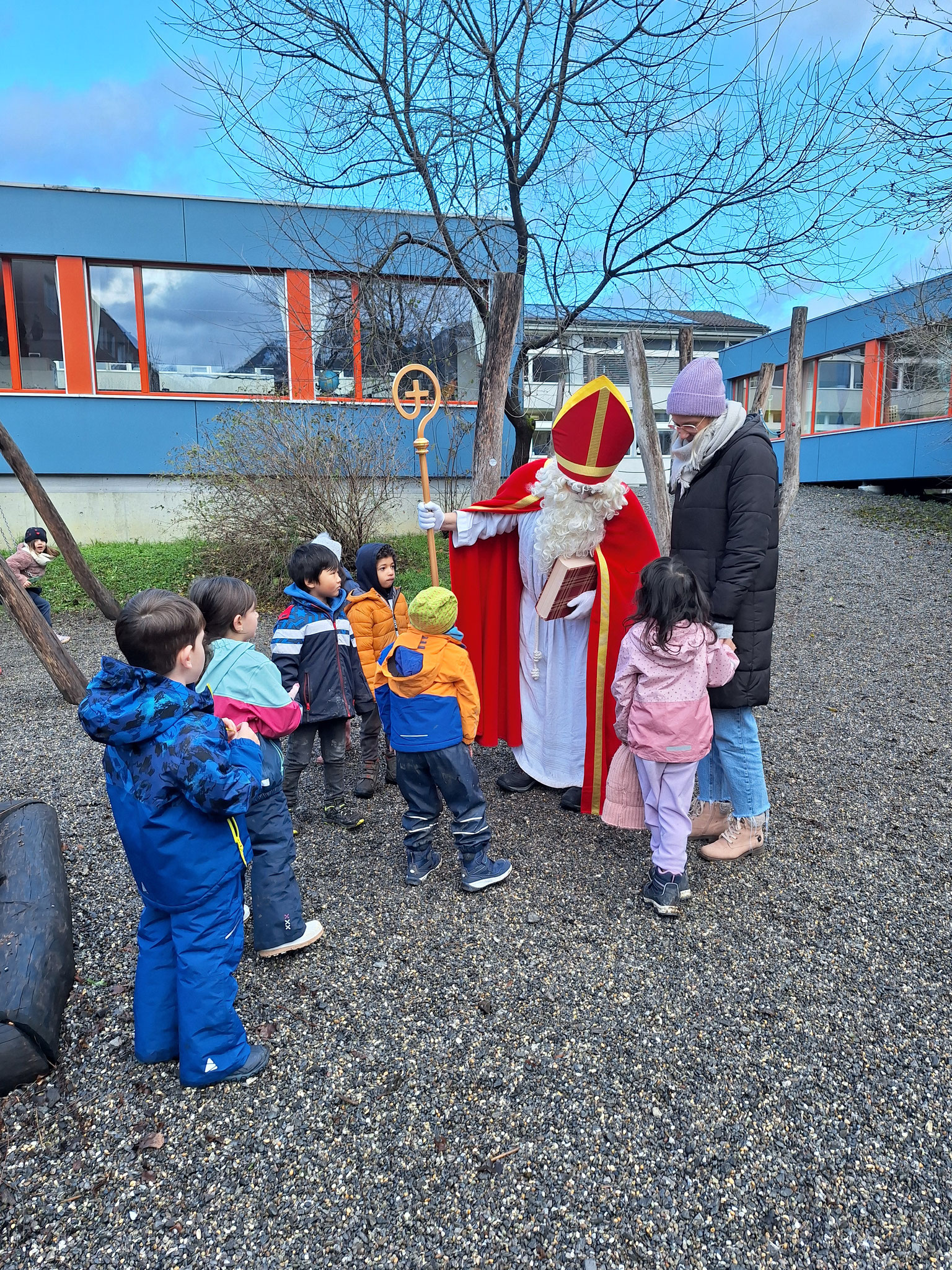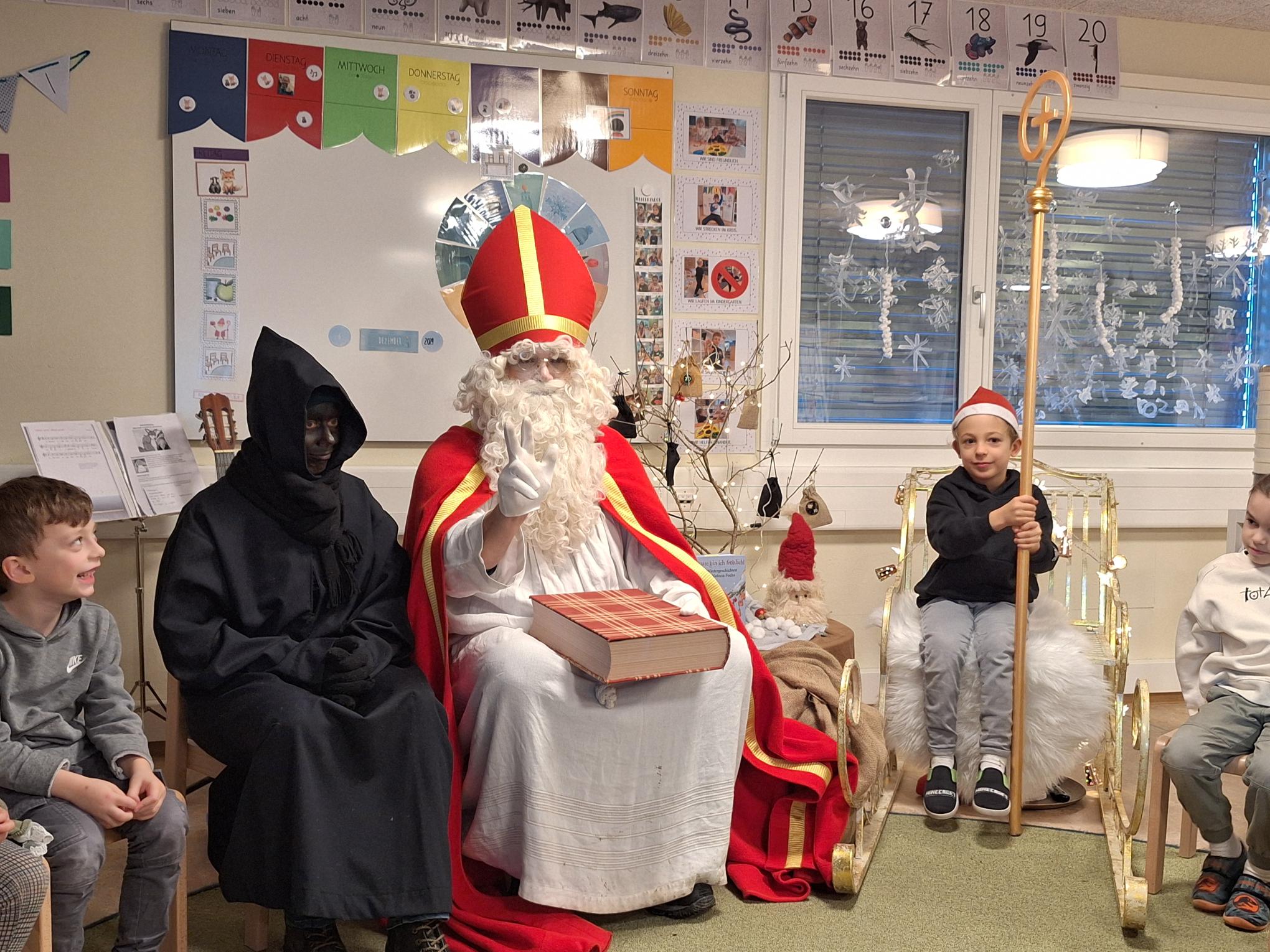 der Samichlaus kam in den Kindergarten mit Geschenken.