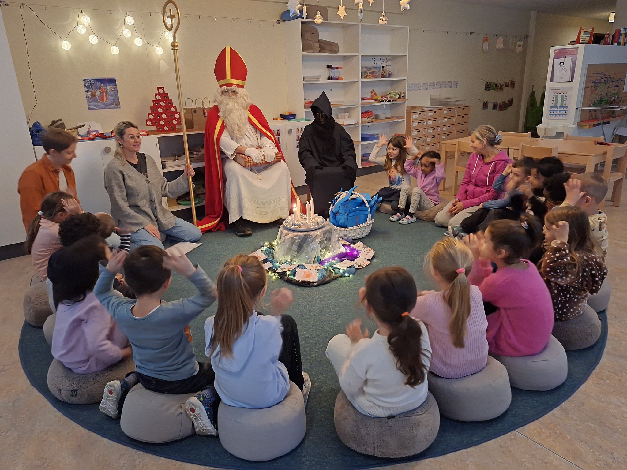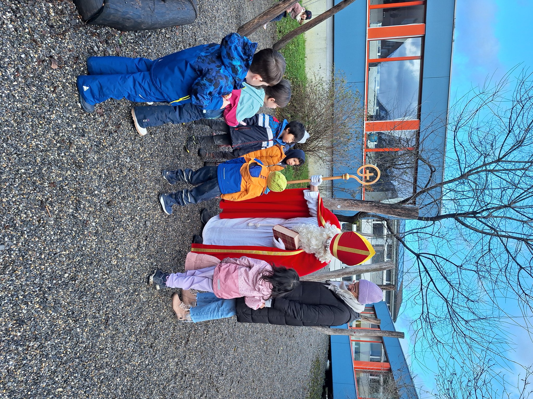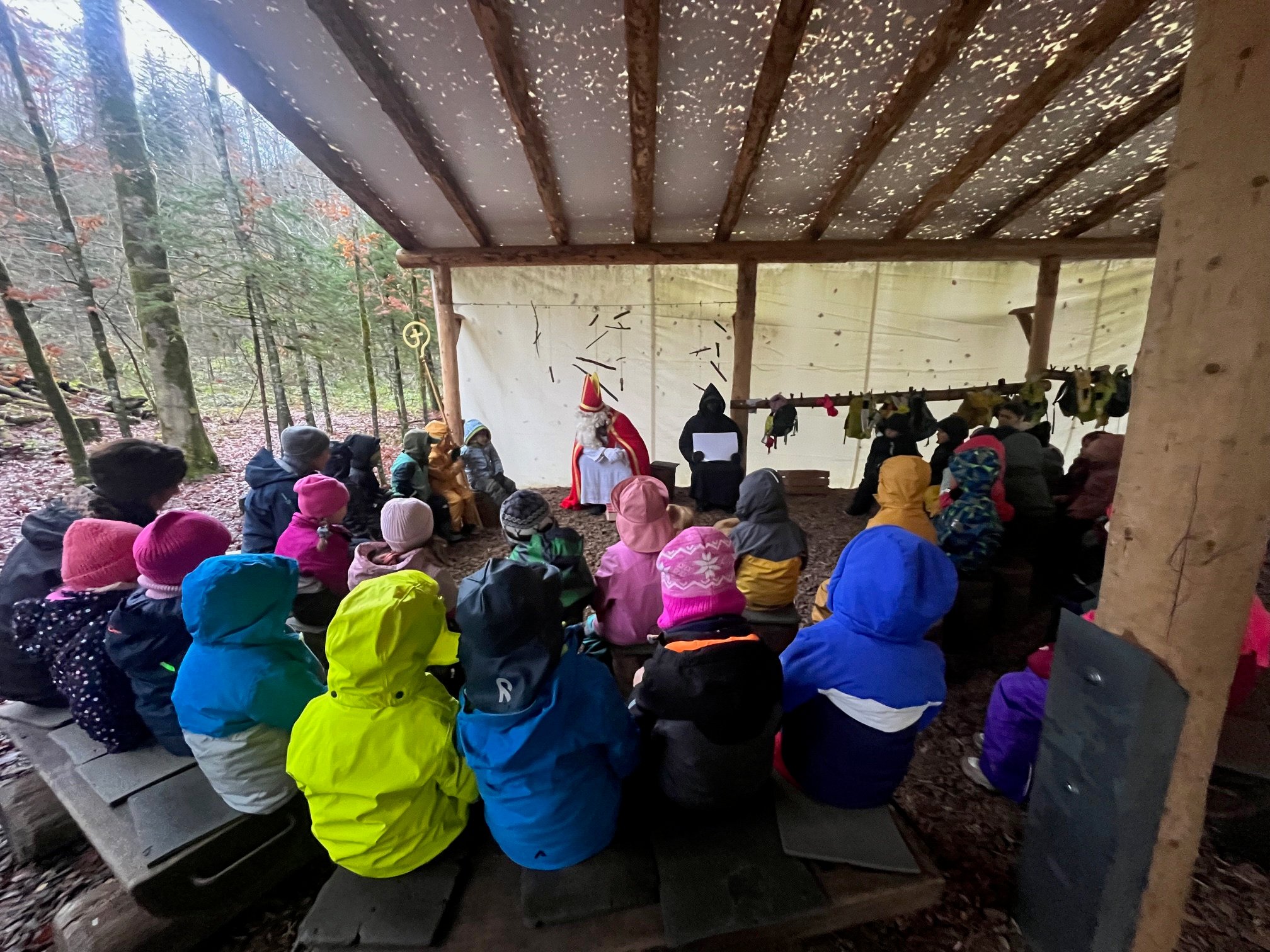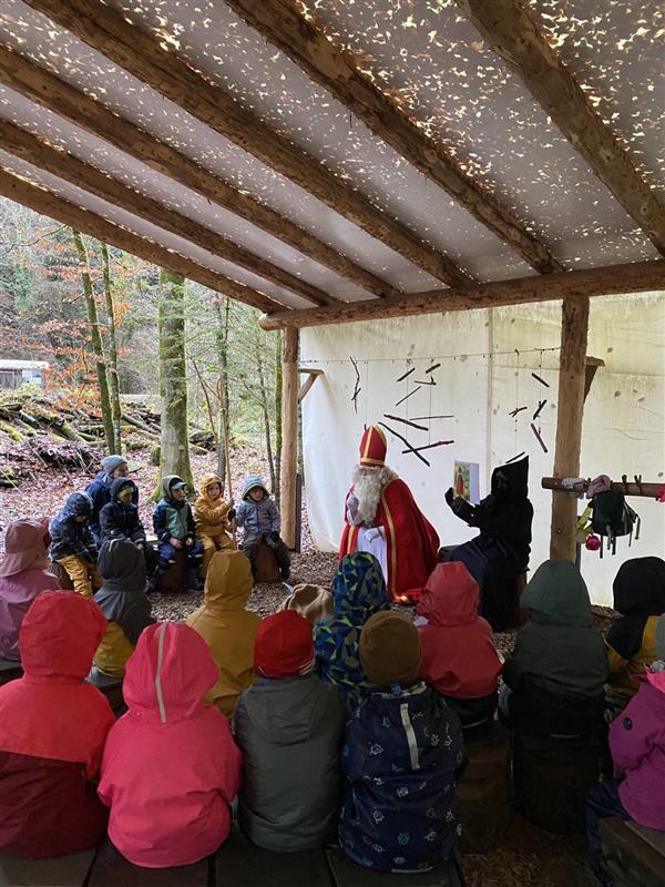der Samichlaus kam in den Kindergarten mit Geschenken.